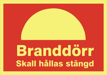 Brandskilt i form af plastskilt i A5 eller A4 med budskabet "Branddør skal holdes lukket".