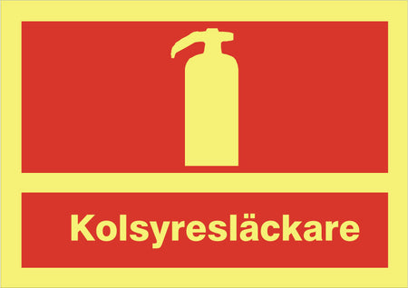 Brandskilt i form af plastskilt i A5 eller A4 med budskabet "Kulsyreslukker".