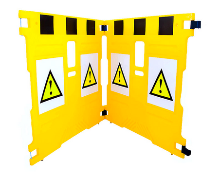 SuperGard er et højere og bredere modulært barrieresystem, der er designet til endnu større sikkerhed og tryghed, når arbejdsområder skal afspærres fra offentligheden under reparations-/vedligeholdelsesarbejde. Ideelt til rulletrapper og bevægelige fortove kan sættene med 2 paneler forbindes med det patenterede snap-on-hængselsystem. Med målene 1100mm i højden og 1100mm i bredden giver dette holdbare og lette sikkerhedshegn øget fleksibilitet med ekstra individuelle tilføjelsespaneler på 550mm. Denne alsidige barriere er fremstillet af kraftig og holdbar polyethylen. Hver panelramme er udstyret med gummifødder, som giver fremragende greb på enhver overflade. Panelet har en højglans, glat finish, som gør det let at rengøre, mens panelerne kan foldes sammen for nem opbevaring.